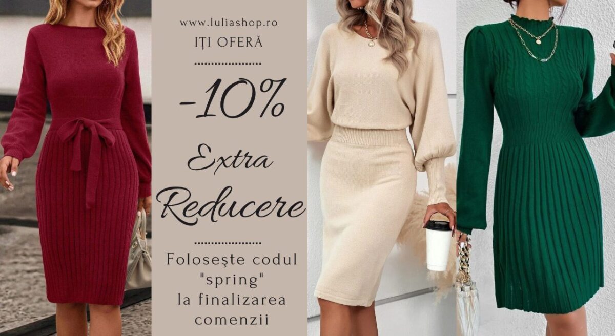 Rochie Scurta Tricotata Talia Rosie – Marimi Mari