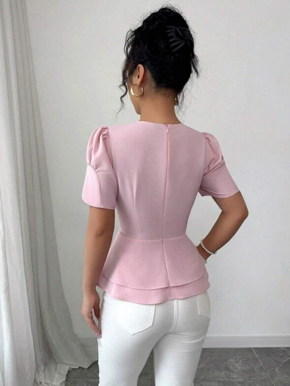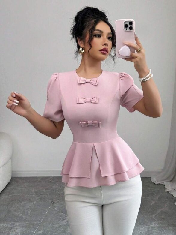 Bluza Dama Adela Rosie cu Broderie Neagra
