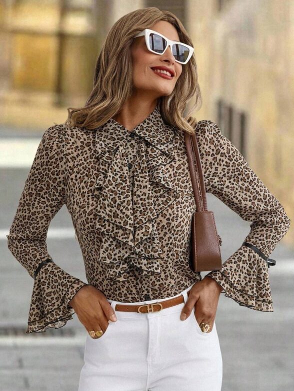 Bluza Dama Ioana Crem cu Print Leopard Negru