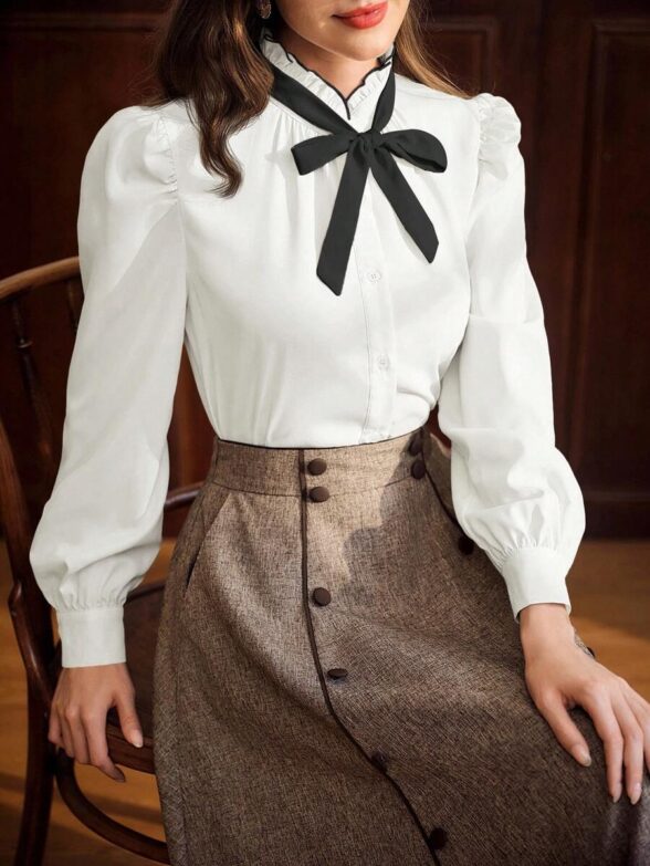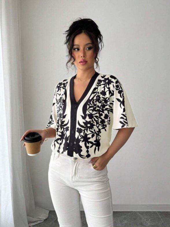 Bluza Dama Dalia Alba cu print Negru si Crem