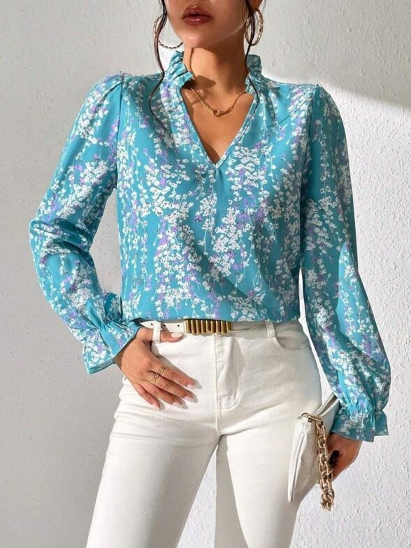 Bluza Dama Shifa Bleumarin cu Print Verde
