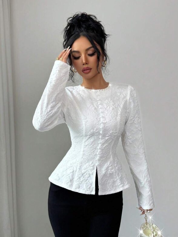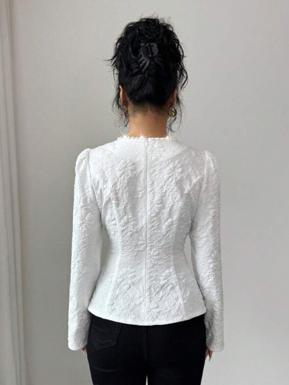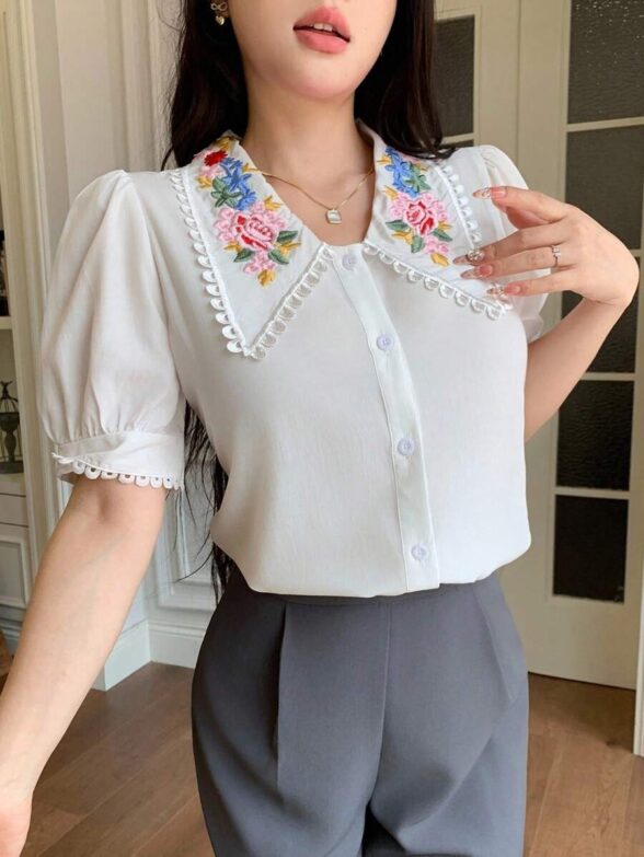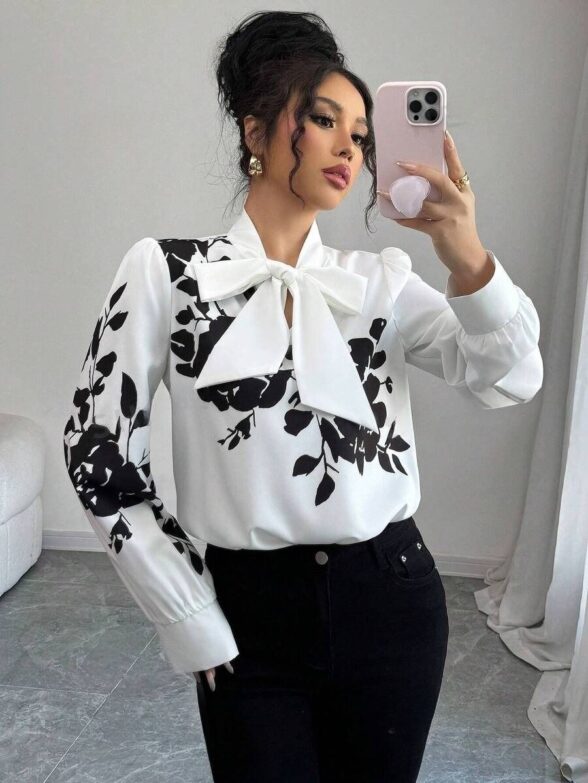 Camasa Dama Rodia Alba cu Print Floral Negru