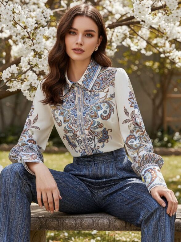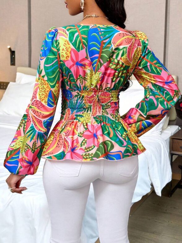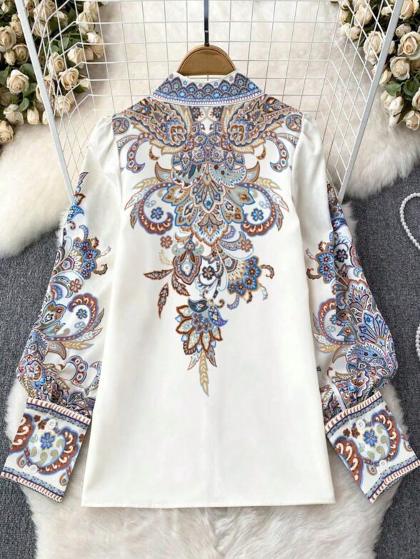 Bluza Dama Bombasi Crem cu Print Floral Multicolor