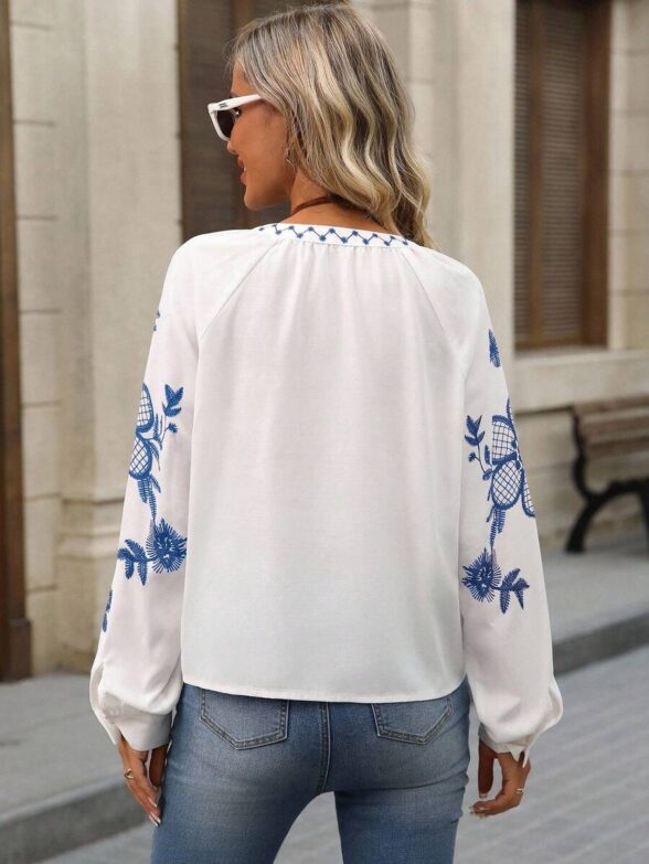 Bluza Dama Sammy Alba cu Print Floral Albastru