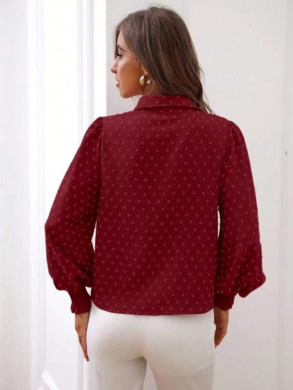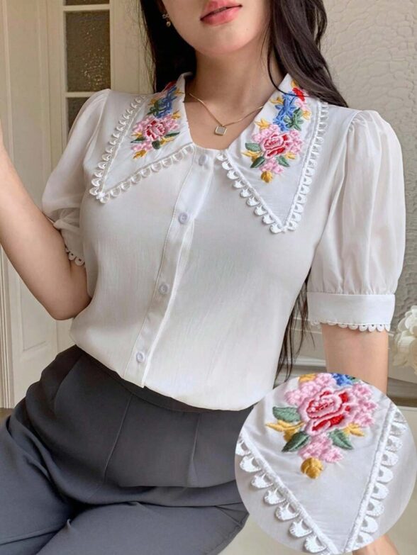 Camasa Dama Florita Grena cu Broderie Alba – Marimi Mari