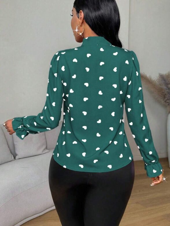 Bluza Dama Vogue Verde cu Inimioare Albe