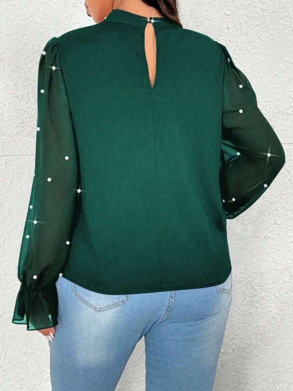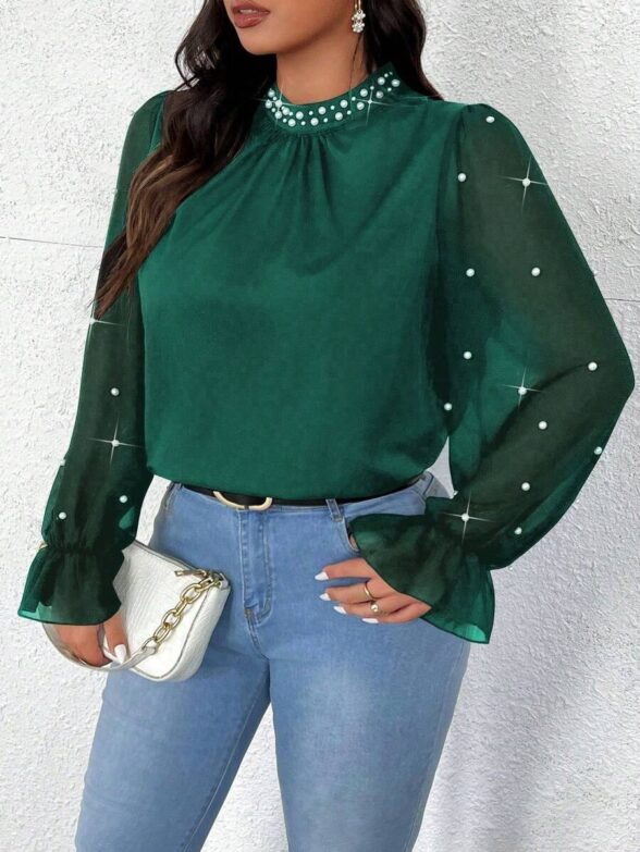Bluza Dama Adonia Verde cu Perle – Marimi Mari