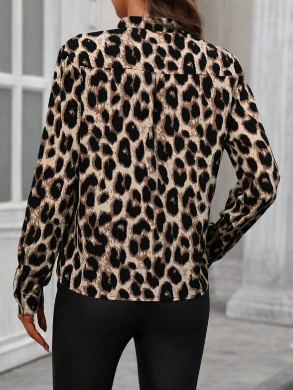 Camasa Dama Cornito Bej cu Print Leopard Negru