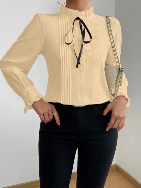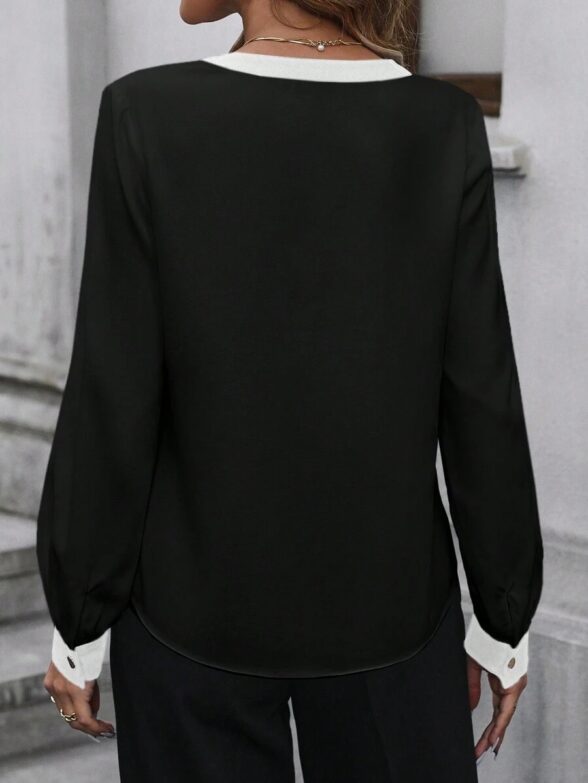 Bluza Dama Corina Neagra cu Funde Crem – Marimi Mari