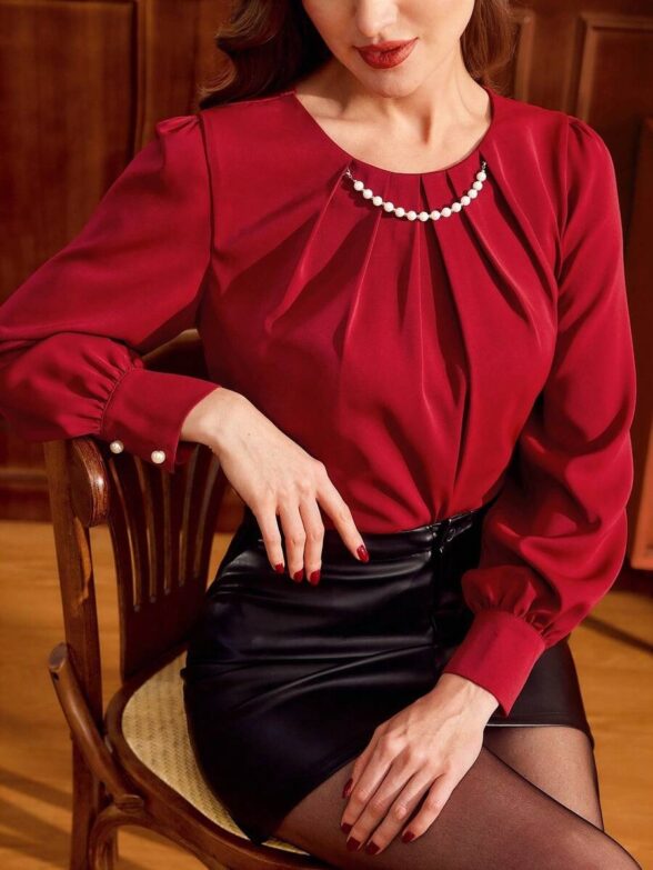 Bluza Dama Orsolia Rosie cu Print Inimioare Albe