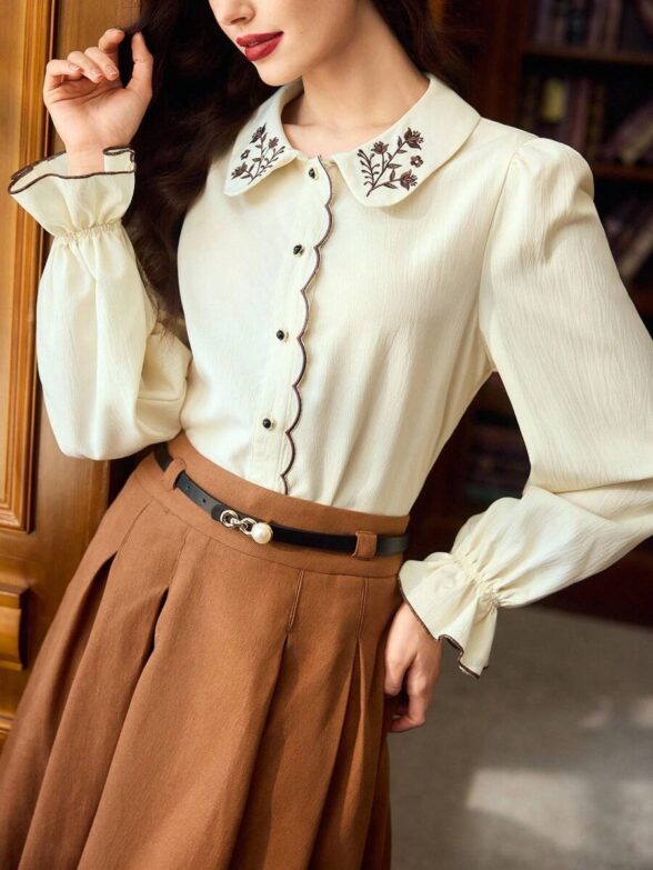 Bluza Dama Linna Neagra cu Broderie Multicolora