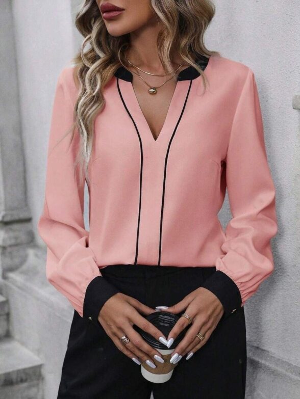 Bluza Dama Sandra Rosie cu Inimioare Negre