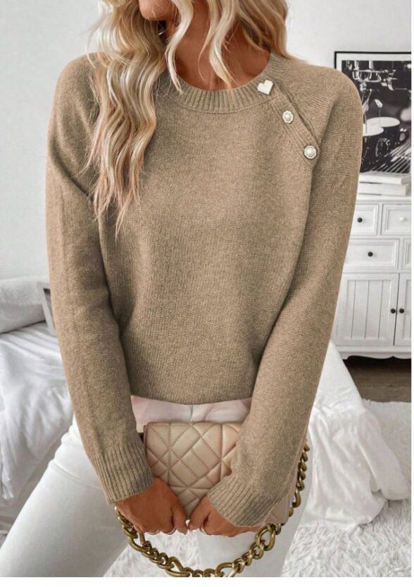Pulover Tricotat Salma Bej Inchis
