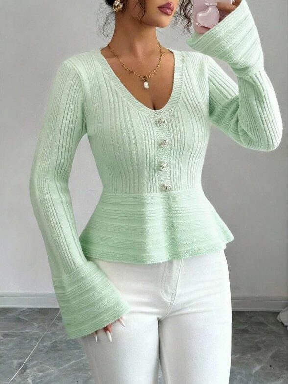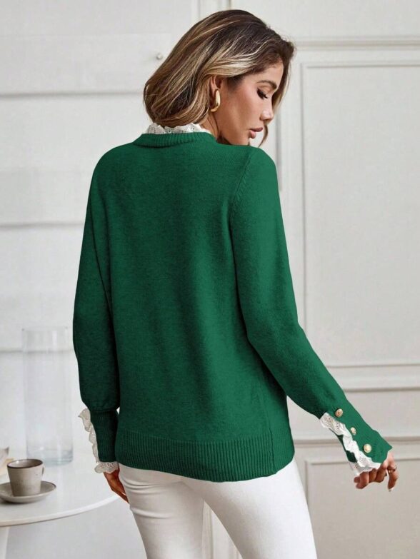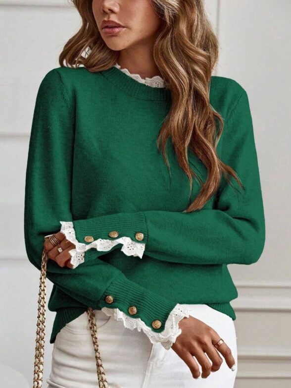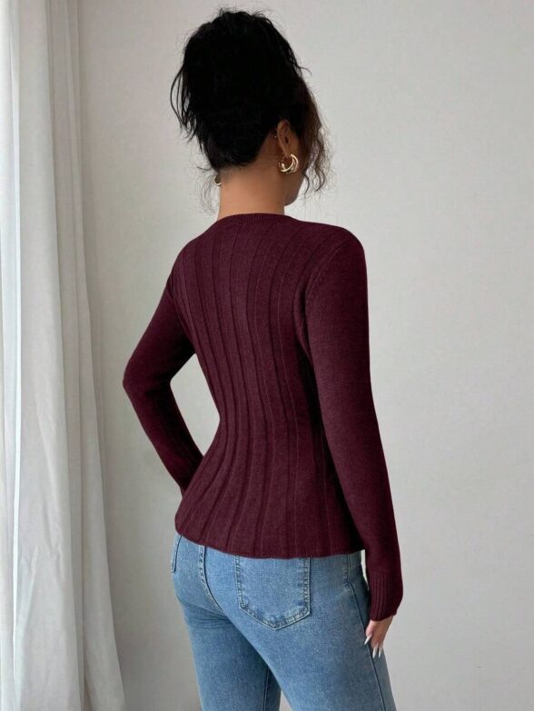 Pulover Tricotat Ludmila Rosu cu Nasturi