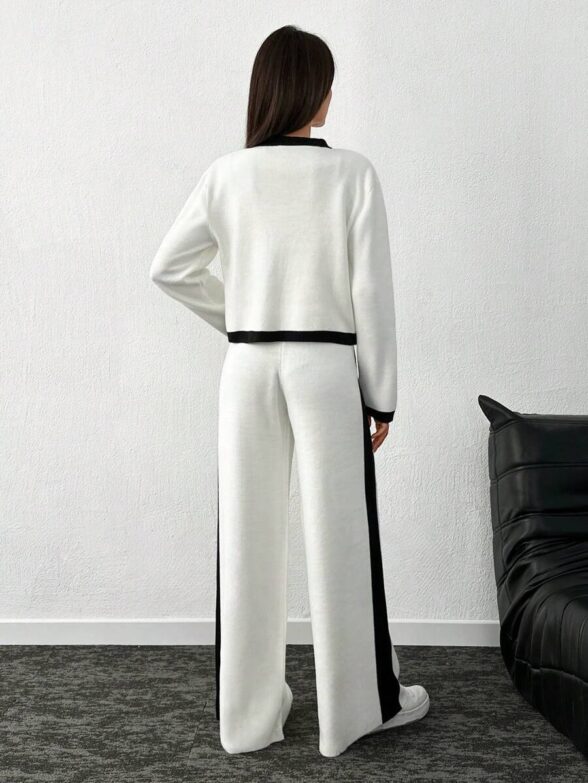 Compleu Tricotat cu Pantalon Lucia Alb cu Dungi Negre