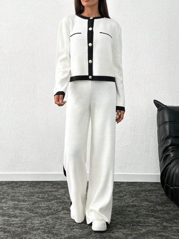 Compleu Tricotat cu Pantalon Vivianne Alb