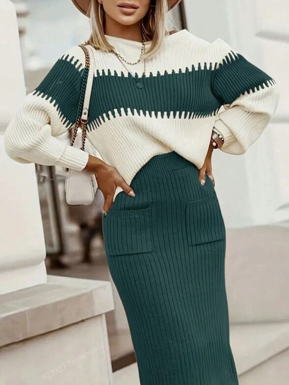 Compleu Tricotat cu Fusta Midi Rebeca Verde