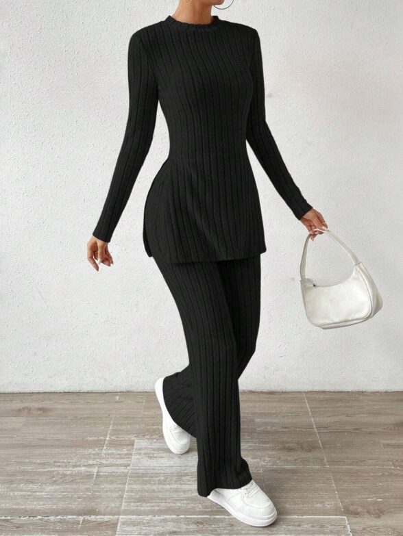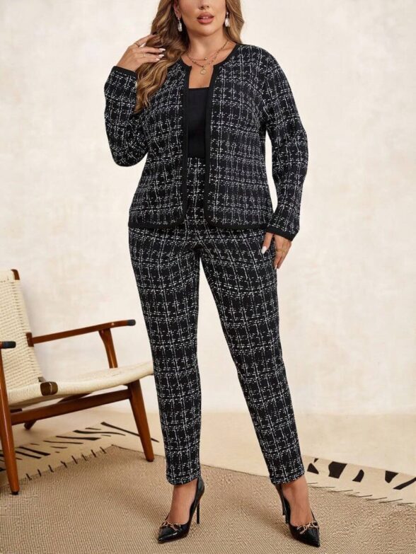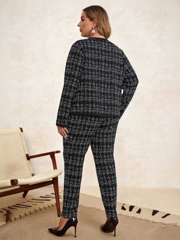 Compleu cu Pantalon Kayla Negru cu Print Alb – Marimi Mari
