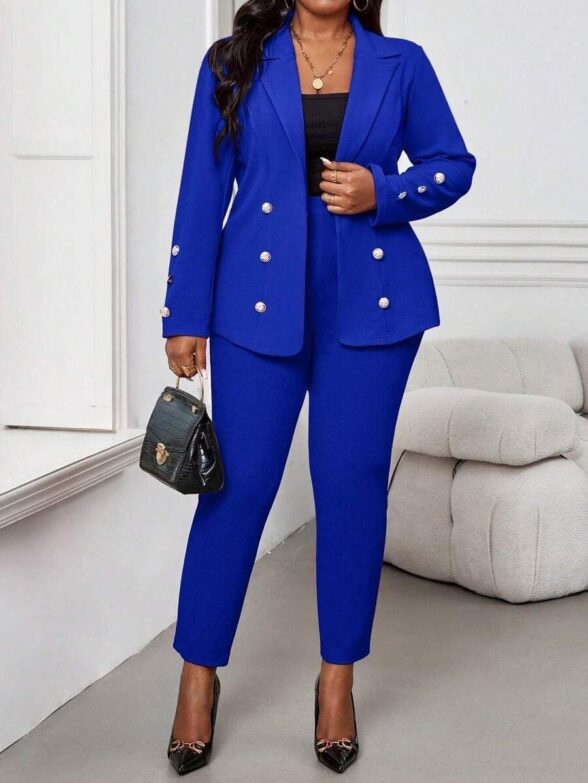 Compleu cu Pantalon Freia Albastru – Marimi Mari