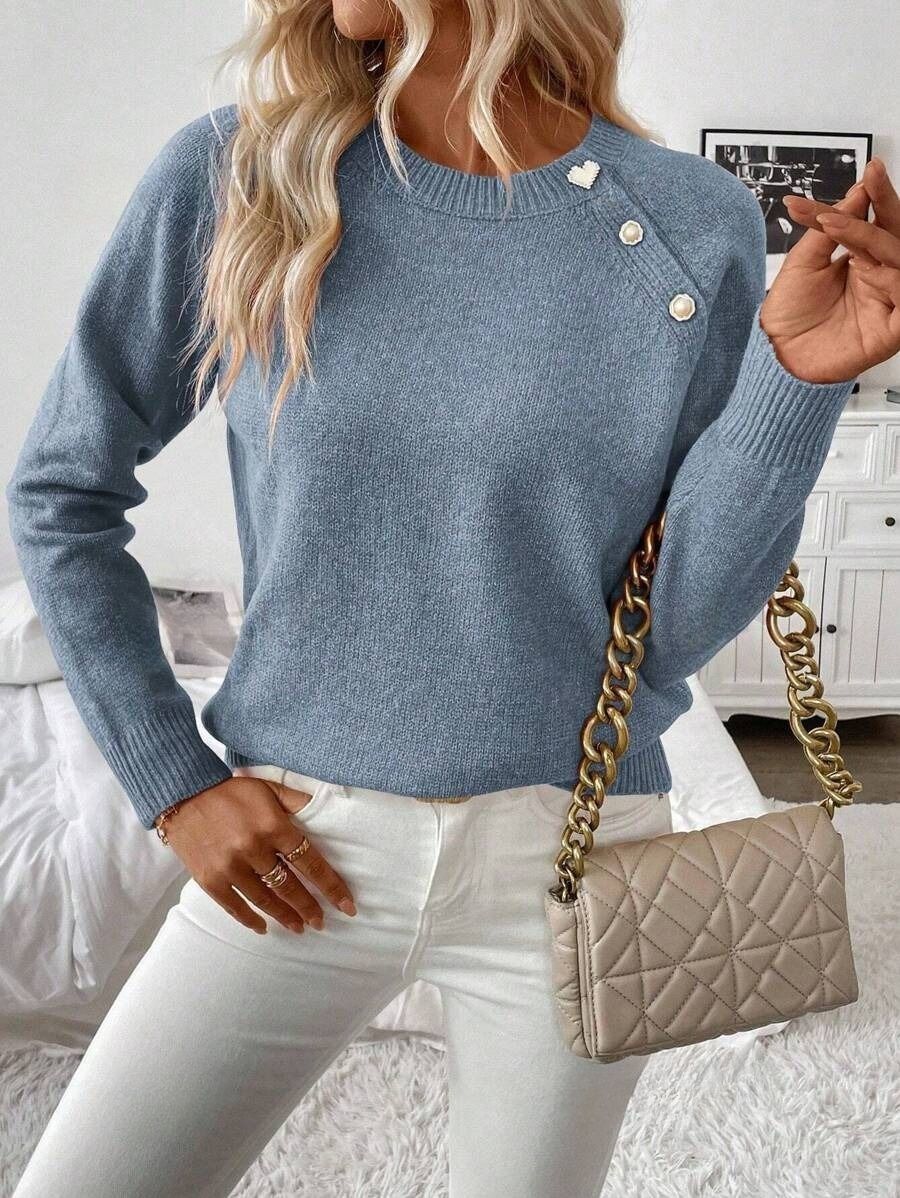 Compleu Tricotat cu Pantalon Zandra Albastru – Marimi Mari