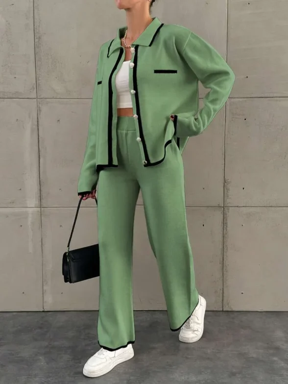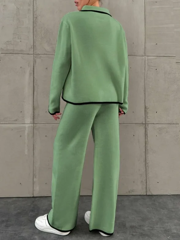 Compleu Tricotat cu Pantalon Ermuse Vernil