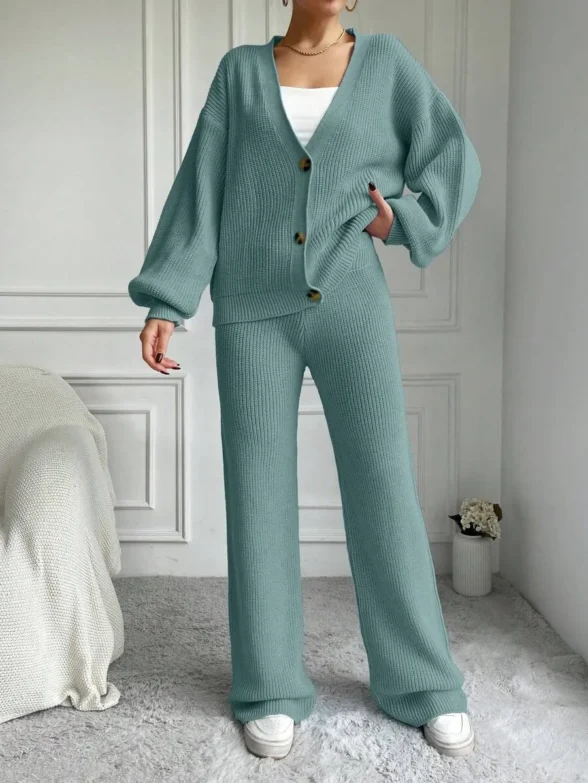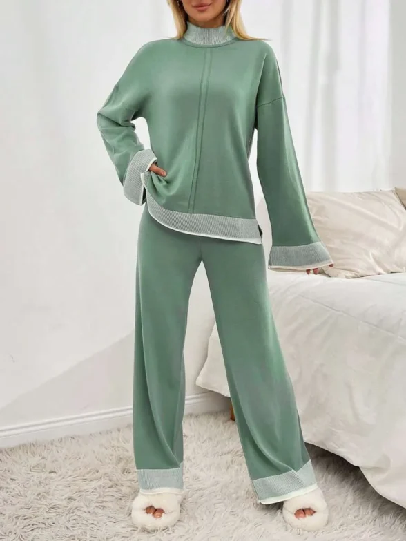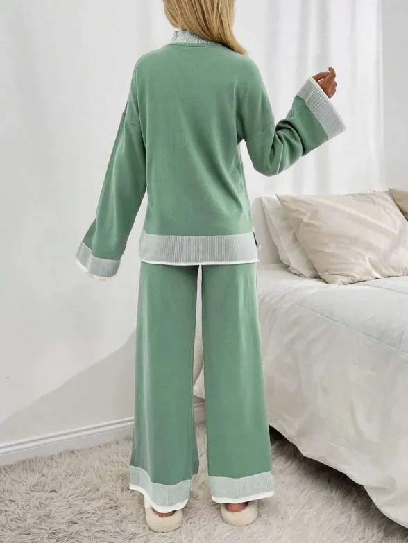 Compleu Tricotat cu Pantalon Santina Verde Menta