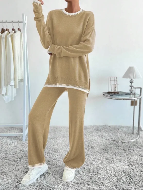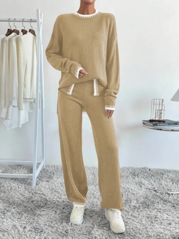 Compleu Tricotat cu Pantalon Sarah Maro Deschis