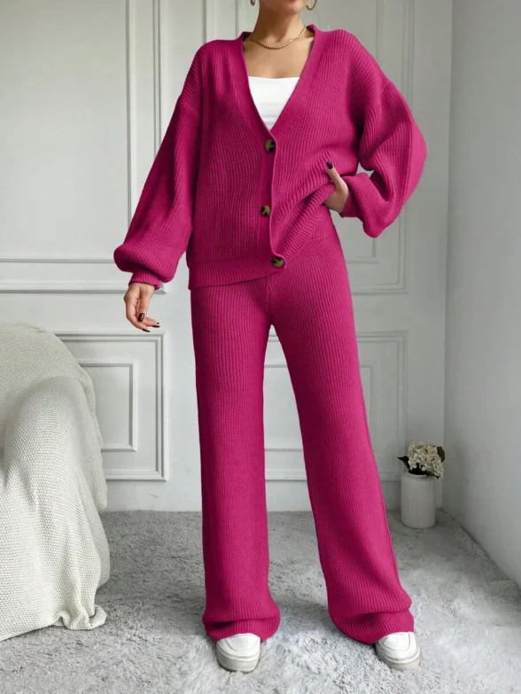 Compleu Tricotat cu Pantalon Electra Roz Inchis