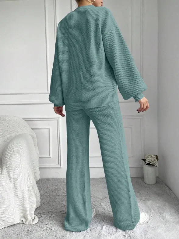 Compleu Tricotat cu Pantalon Rebeca Bleumarin