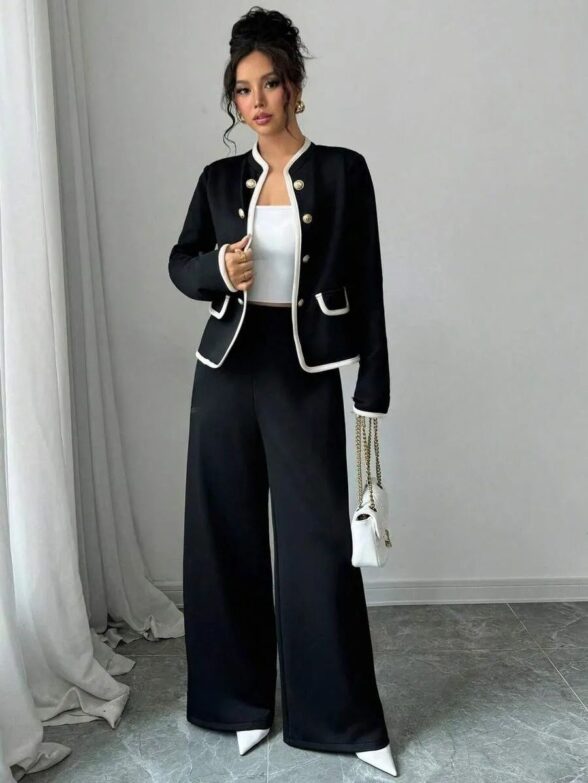 Compleu Halda Alb-Negru format din Sacou si Pantalon
