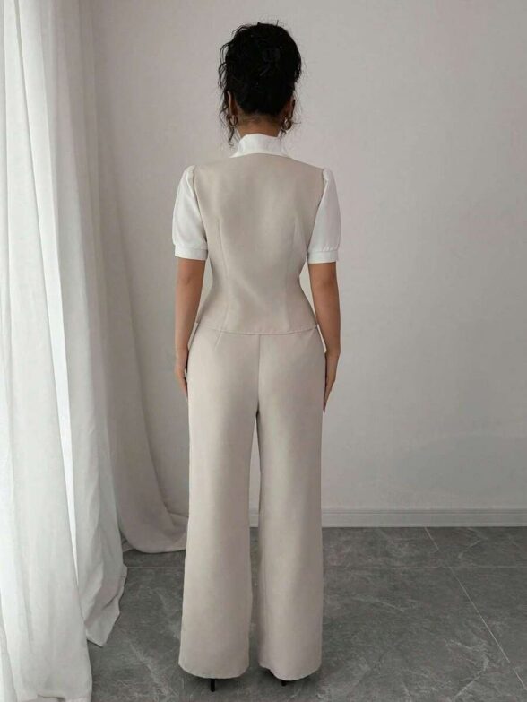 Compleu Mina Crem format din Vesta si Pantalon
