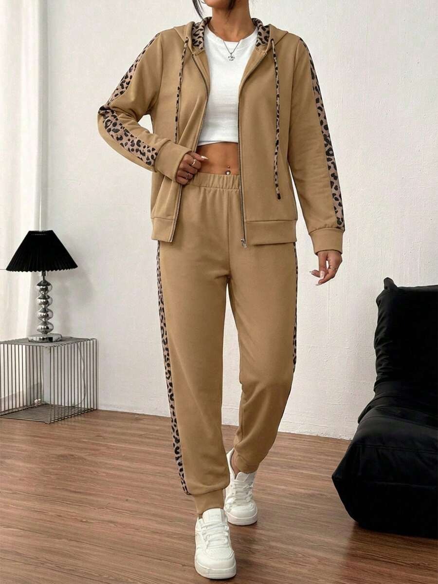 Compleu cu Pantalon Alessia Negru cu Print Leopard