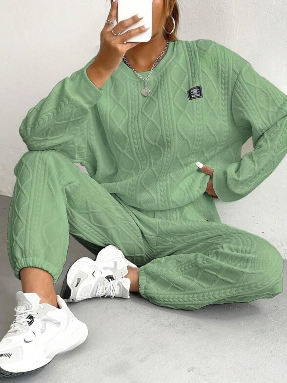 Compleu Pearly Verde cu Print Negru format din Top si Pantalon