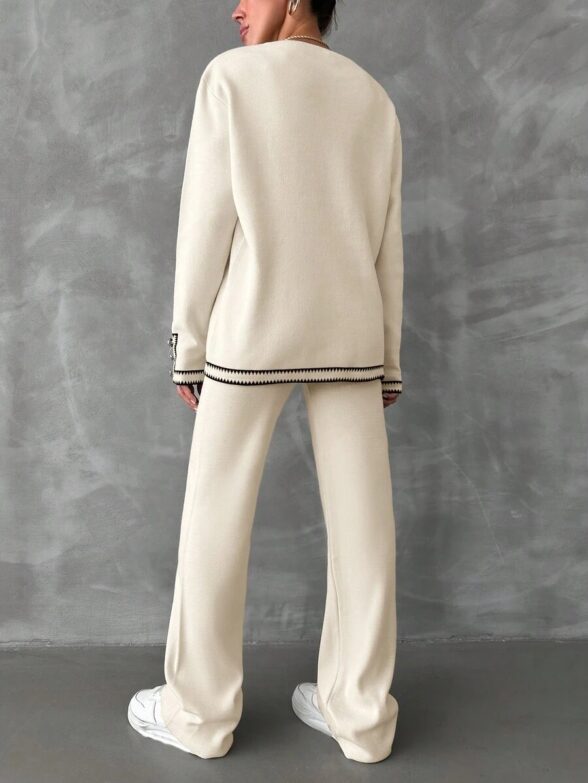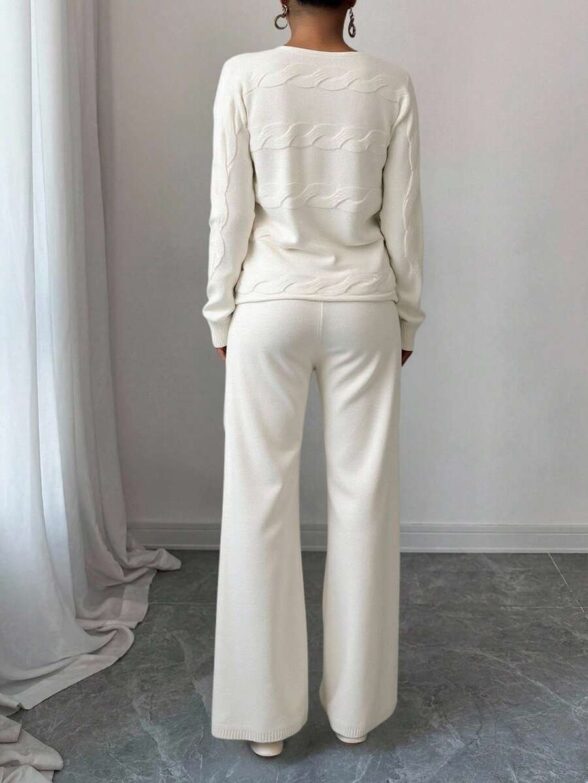 Compleu Tricotat cu Pantalon Vivianne Alb