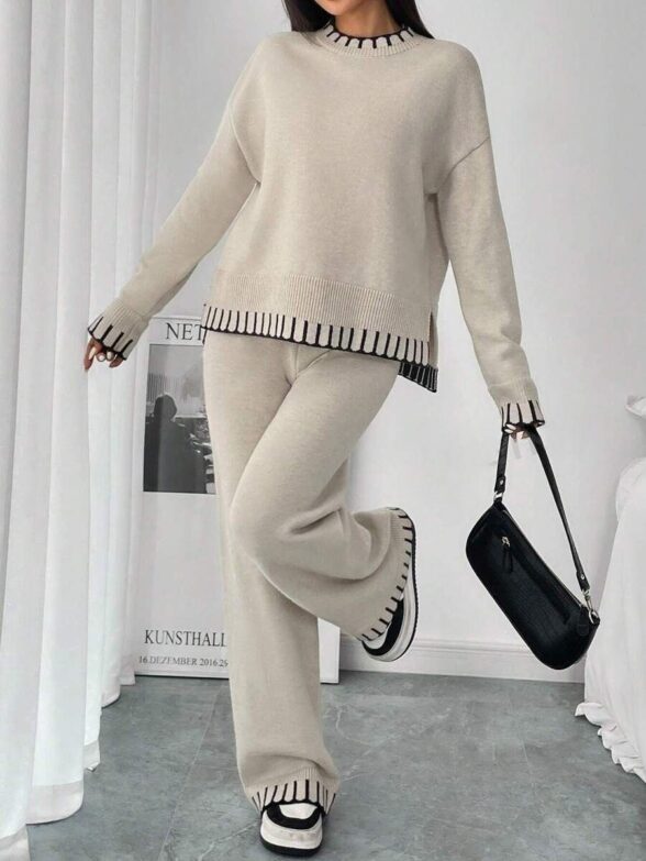 Compleu Tricotat cu Pantalon Ella Crem