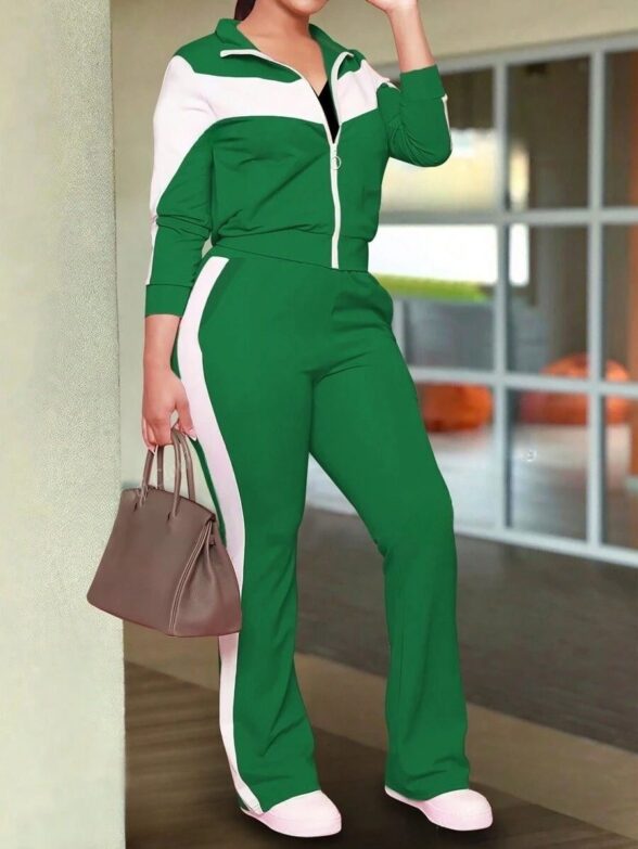 Trening Dama Sandra Verde cu Maneci Albe din Bumbac