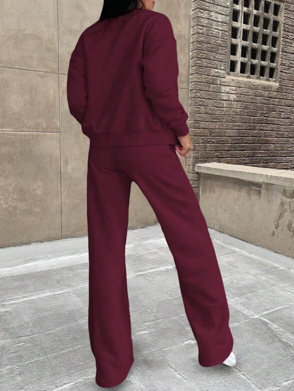 Compleu cu Pantalon Esra Grena cu Print Geometric Negru – Marimi Mari