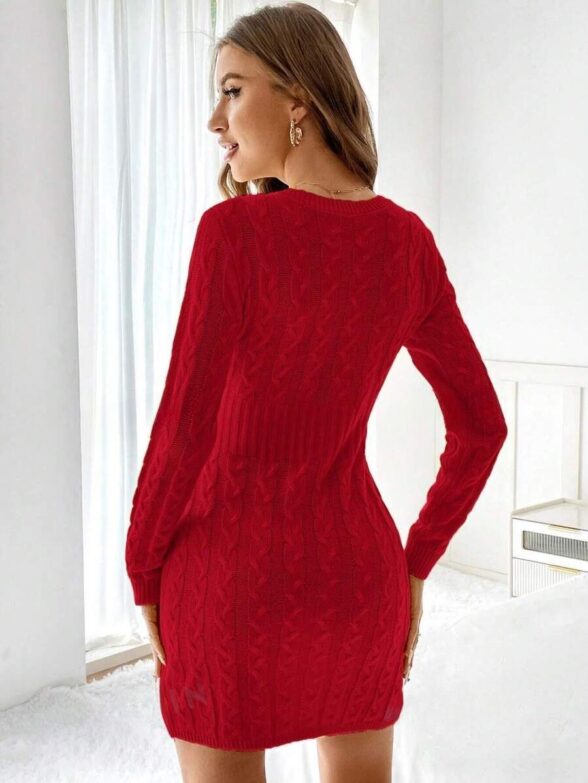 Rochie Tricotata Scurta Lifa Rosie Cu Model In Relief