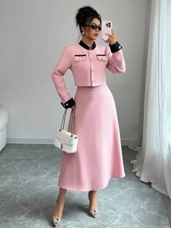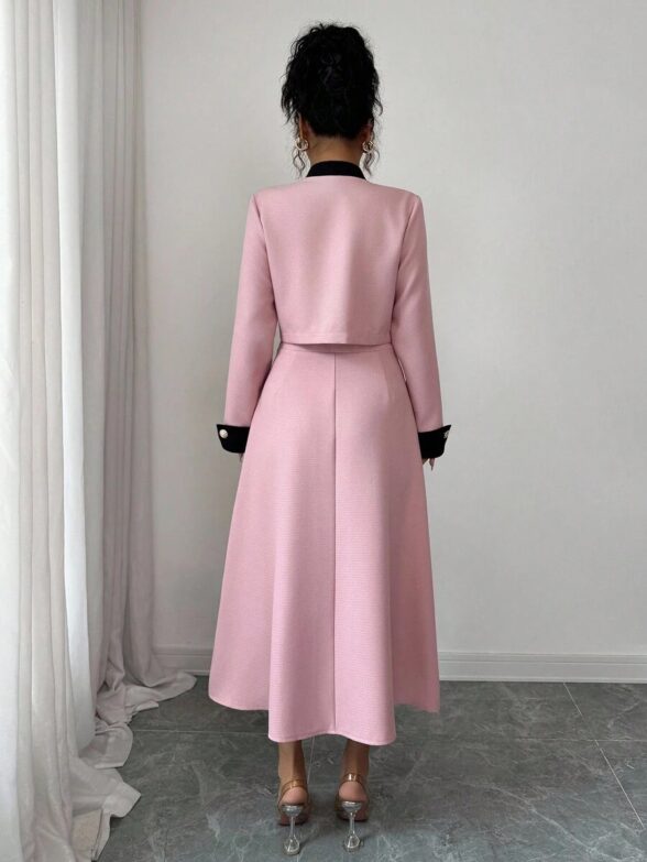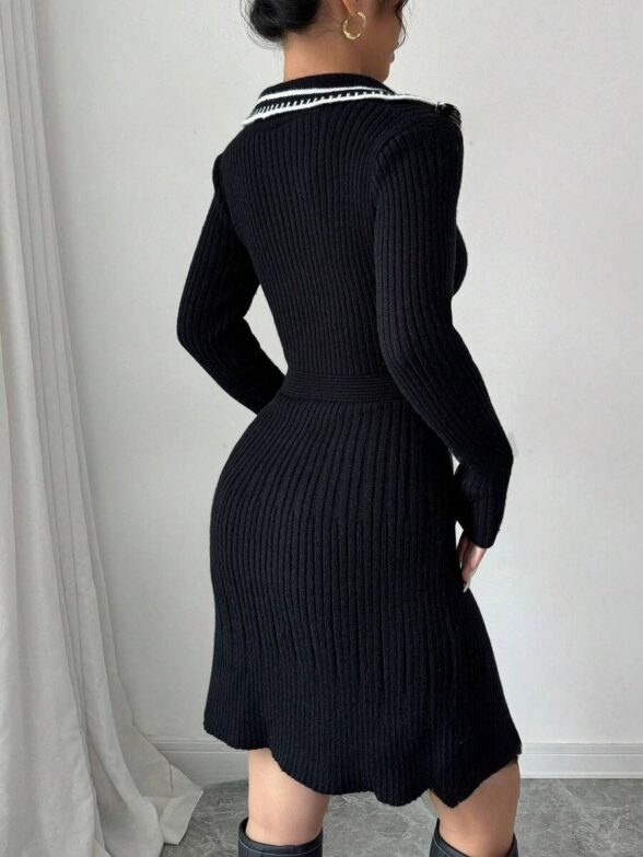 Compleu cu Rochie Midi Karina Negru cu Alb