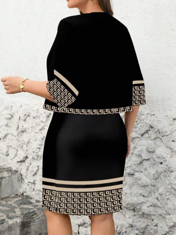 Compleu cu Rochie Scurta Adnana Negru cu Print Alb – Marimi Mari