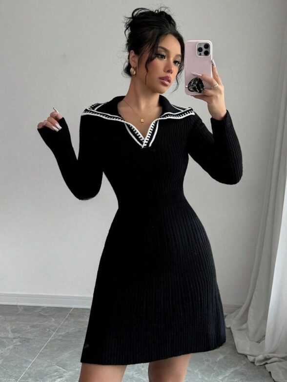 Compleu cu Rochie Scurta Eldora Alb cu Negru