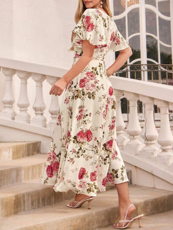 Rochie Midi Sorana Crem cu Print Floral Maro