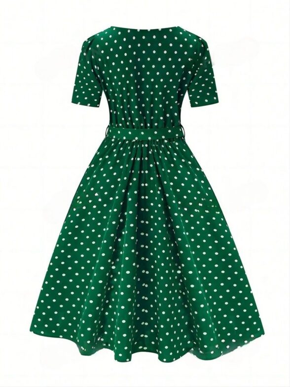 Rochie Lunga Bora Neagra Cu Buline Albe