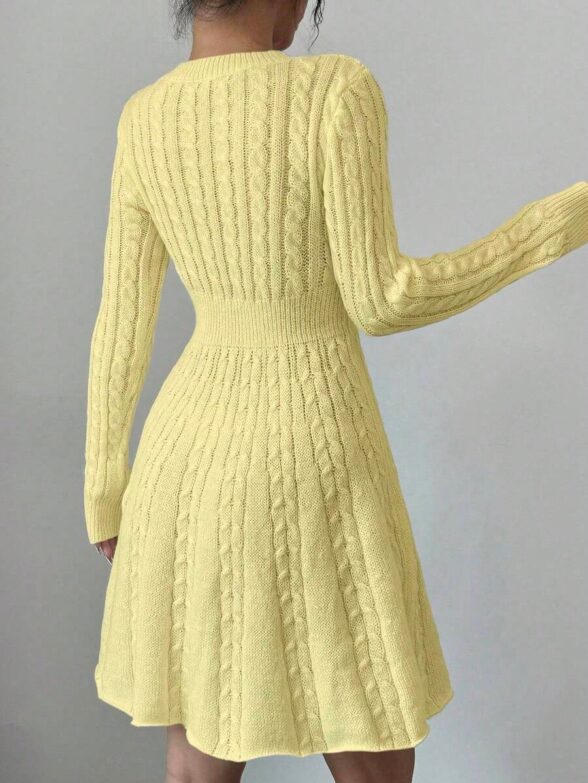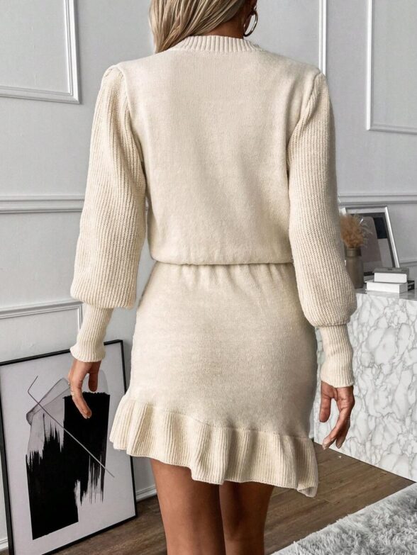 Compleu Tricotat cu Rochie Scurta Sorana Crem