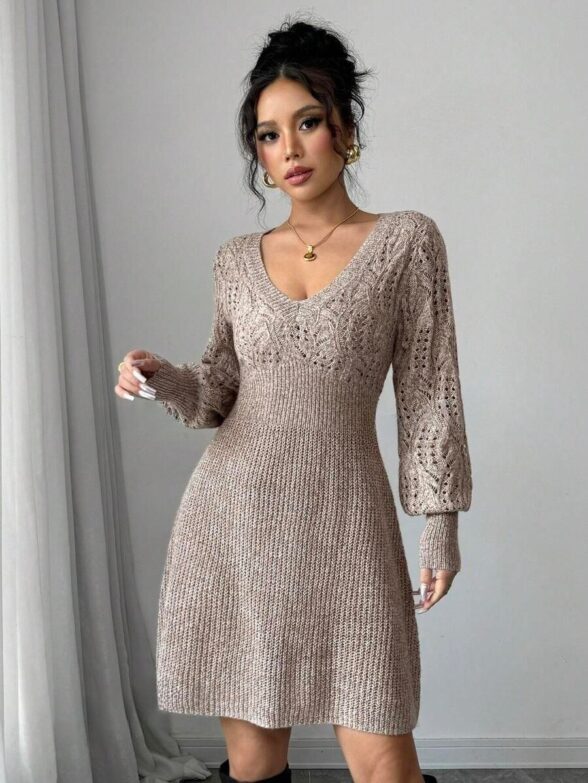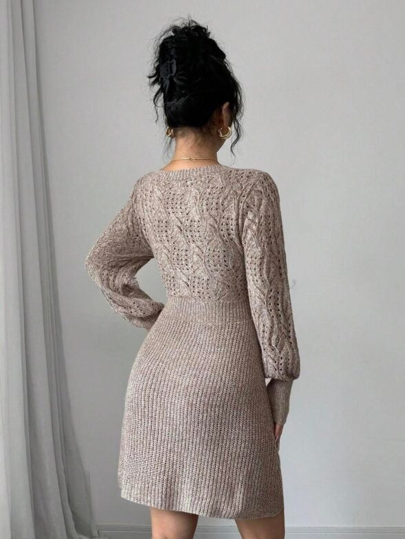 Compleu Tricotat cu Rochie Scurta Sorana Grena