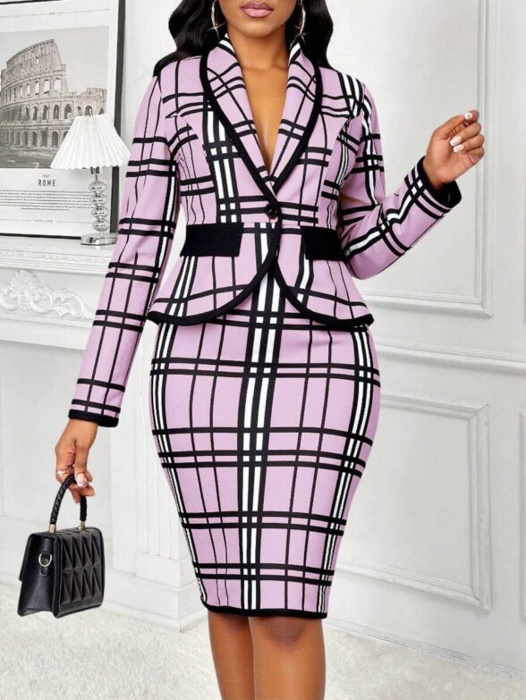 Compleu Samara Roz format din Sacou si Fusta Midi