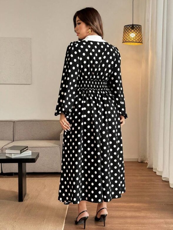 Rochie Lunga Mirabela Neagra cu Buline Albe – Marimi Mari