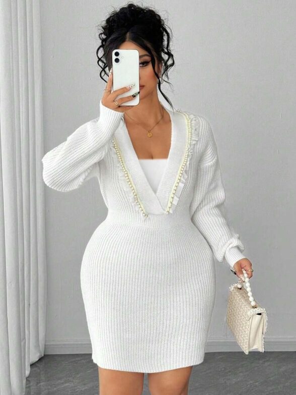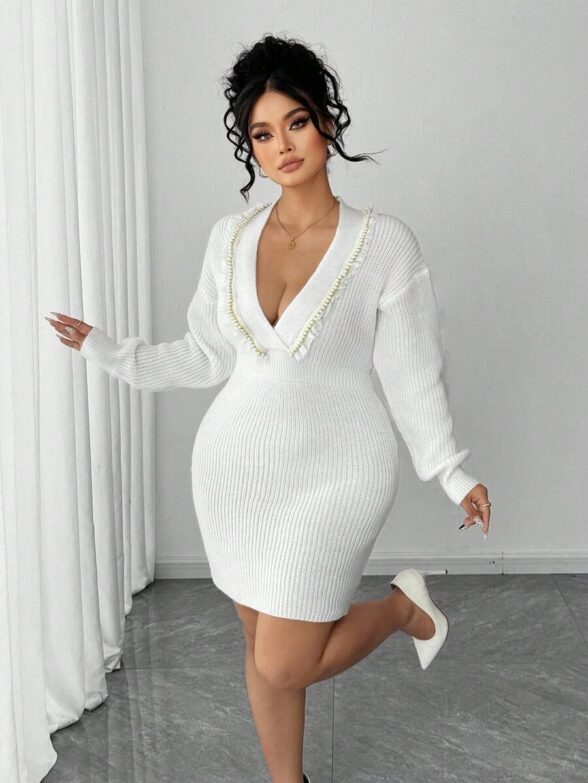 Rochie Scurta Tricotata Maruca Alba – Marimi Mari