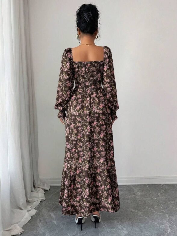 Rochie Lunga Elvira Maro cu Print Floral Roz