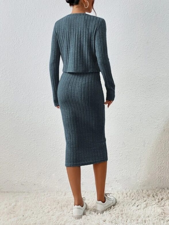Compleu cu Rochie Midi Lucana Gri Deschis